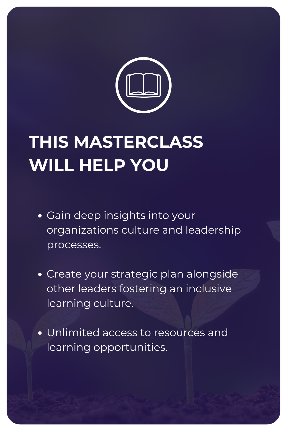 This masterclass is for leaders/organizations who deeply care about their leadership/staff development process and culture transformation. Participants must be willing to commit and be ready to apply the methodology taught.
