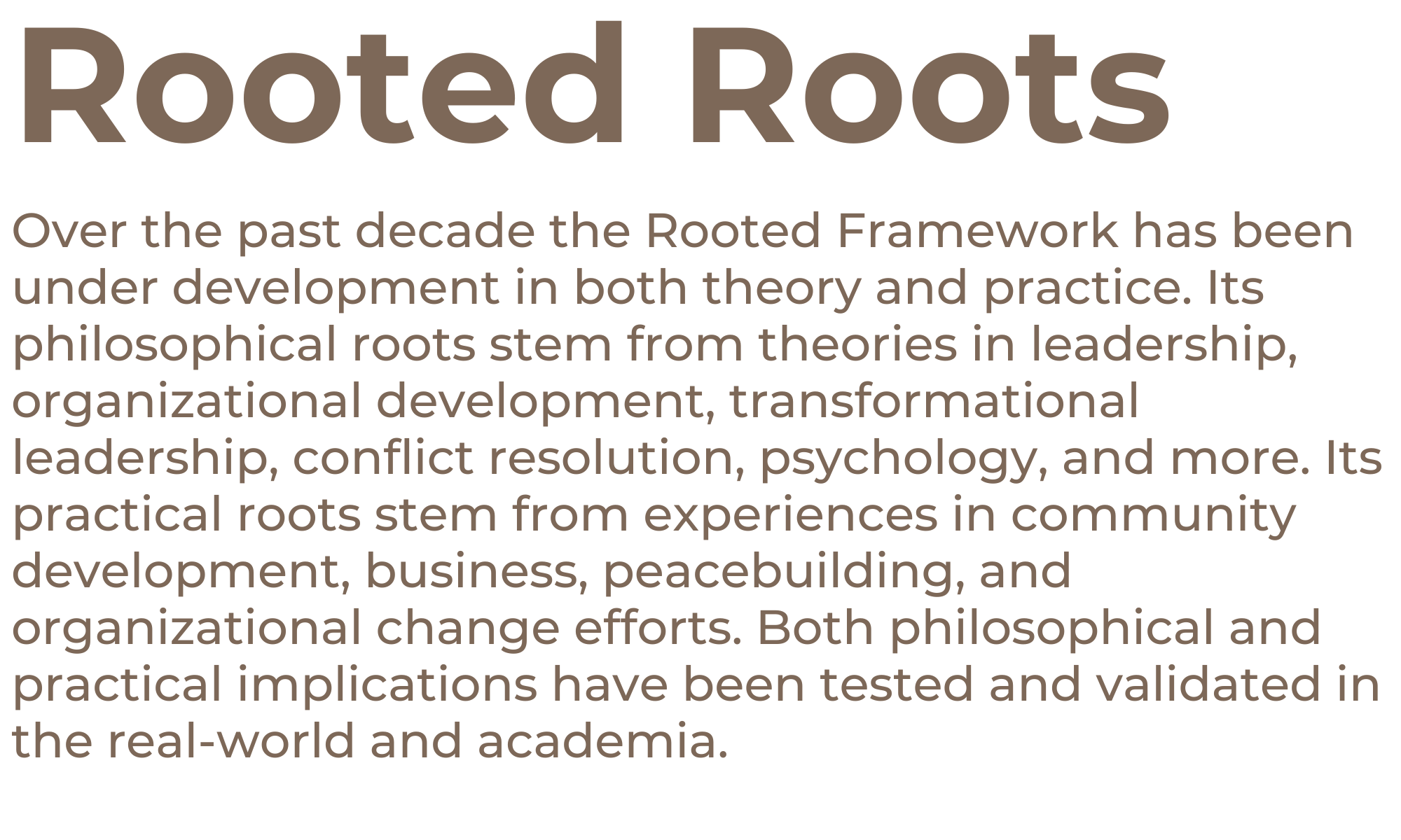 The framework not only provides a collective language and set of tools, but most importantly it provides a model for how people and communities can personally experience transformational change.